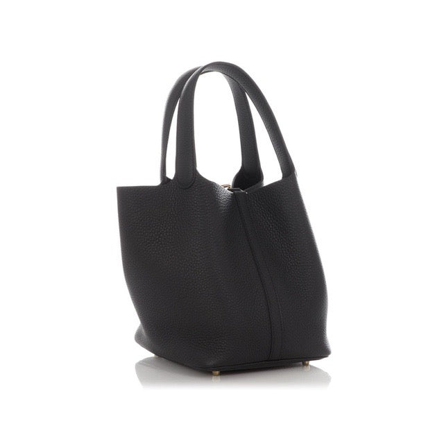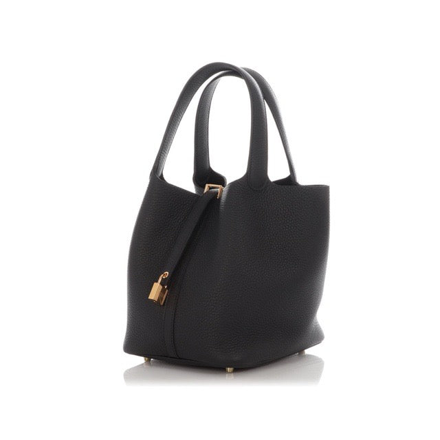 HERMES PICOTIN LOCK 22 MM BLACK TAURILLON CLEMENCE GOLD HARDWARE