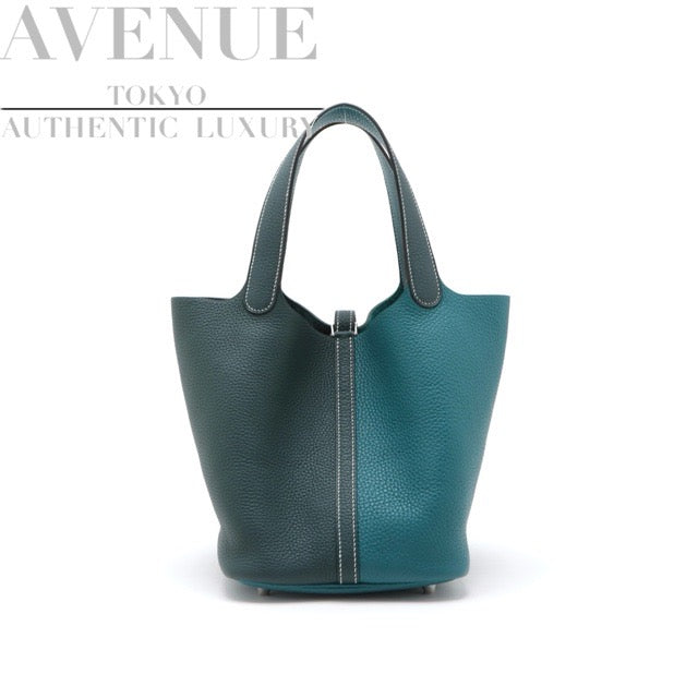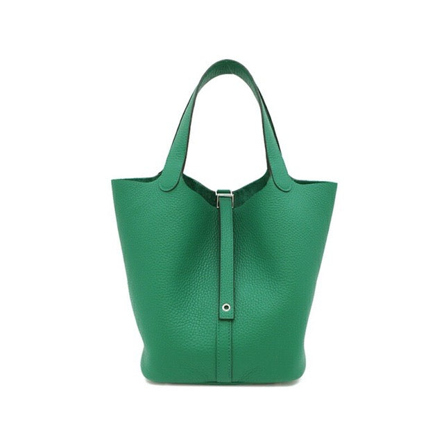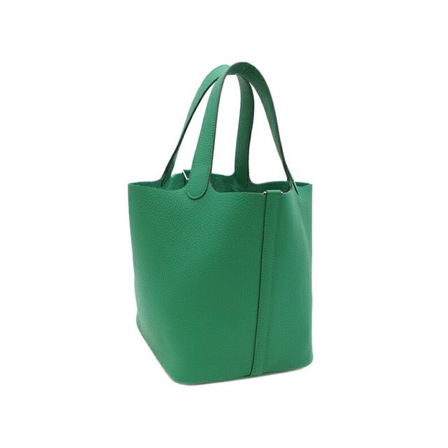 HERMES PICOTIN LOCK 22 MM VERT VERTIGO TAURILLON CLEMENCE SILVER HARDWARE