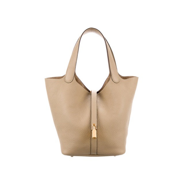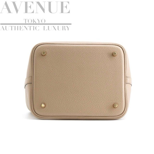 HERMES PICOTIN LOCK 22 MM BEIGE MARFA TAURILLON CLEMENCE GOLD HARDWARE