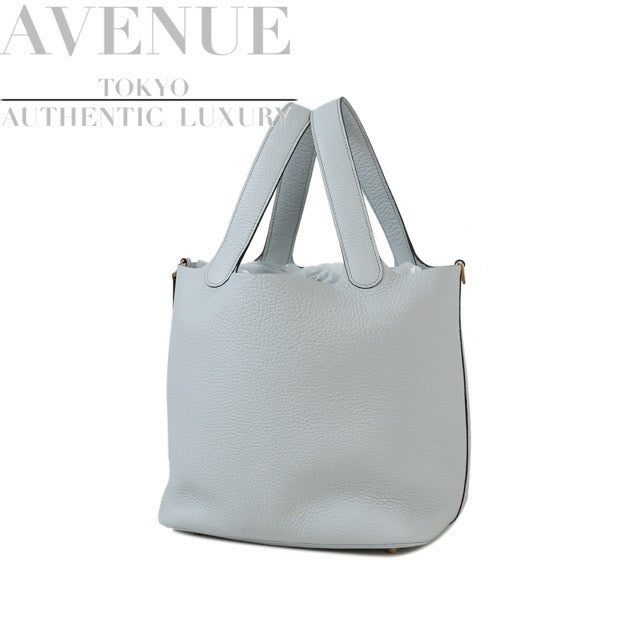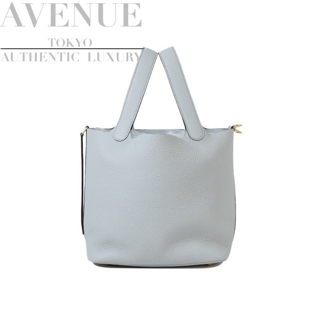 HERMES PICOTIN LOCK 22 MM BLEU PALE TAURILLON CLEMENCE GOLD HARDWARE