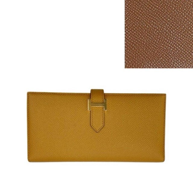 HERMES BEARN SOUFFLE GUSSET LONG WALLET VERSO BISCUIT ALEZAN EPSOM GOLD HARDWARE