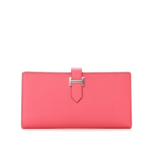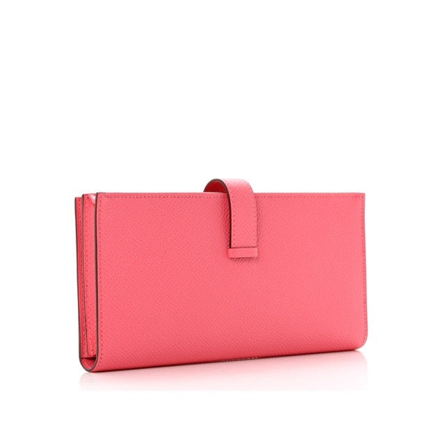 HERMES BEARN SOUFFLE GUSSET LONG WALLET ROSE AZALEE EPSOM SILVER HARDWARE