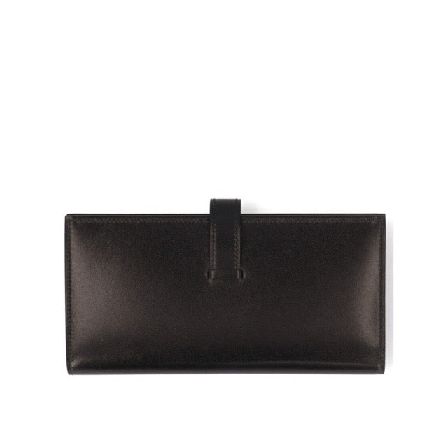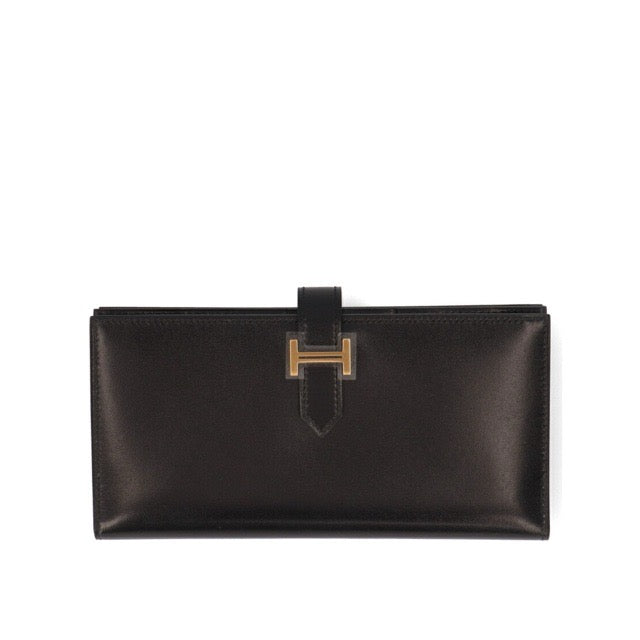 HERMES BEARN GUSSET LONG WALLET BLACK BOX CALFSKIN GOLD HARDWARE
