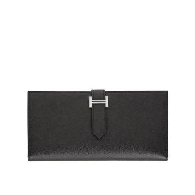 HERMES BEARN SOUFFLE WITH GUSSET LONG WALLET MONOCHROME SO BLACK MADAME BLACK HARDWARE