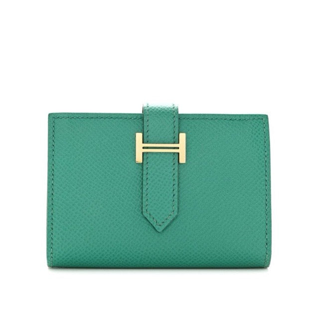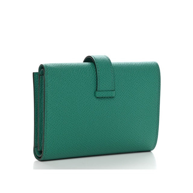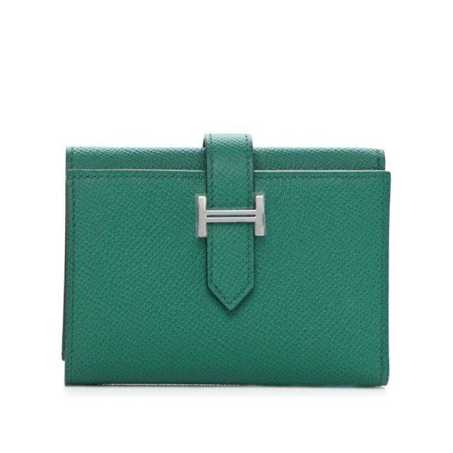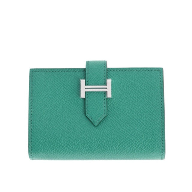 HERMES BEARN MINI WALLET VERT JADE EPSOM SILVER HARDWARE