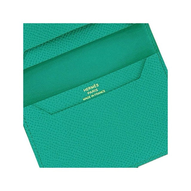 HERMES BEARN CARD HOLDER CARD CASE VERT JADE EPSOM GOLD HARDWARE