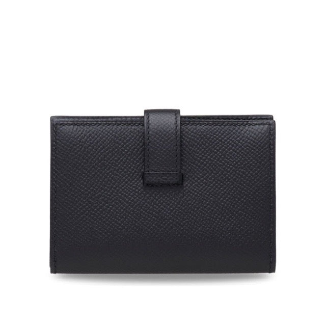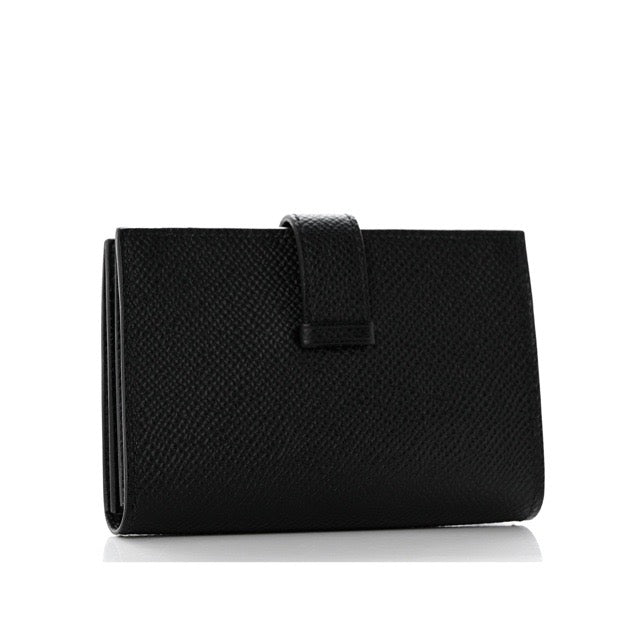 HERMES BEARN COMBINATION MINI WALLET BLACK EPSOM SILVER HARDWARE