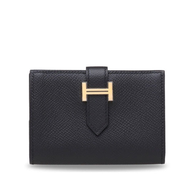 HERMES BEARN MINI WALLET BLACK EPSOM GOLD HARDWARE