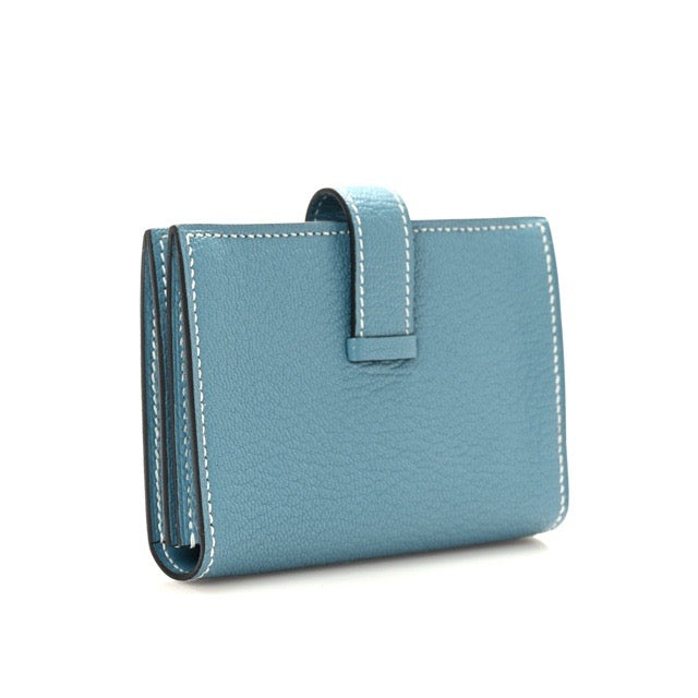 HERMES BEARN CARD HOLDER CARD CASE NEW BLEU JEAN CHEVRE MYSORE GOLD HARDWARE