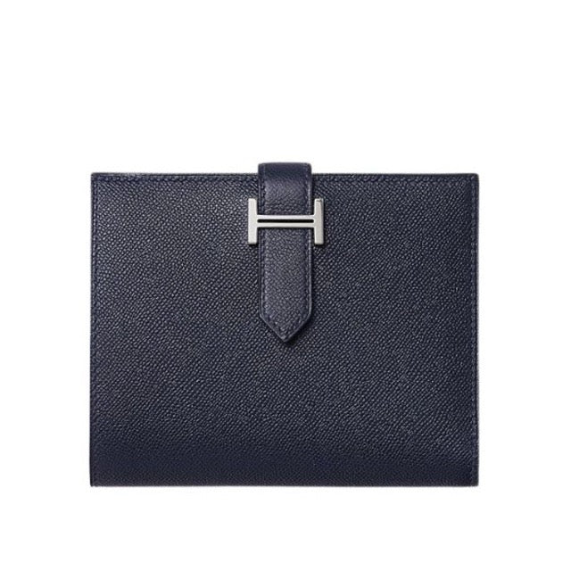 HERMES BEARN COMPACT FOLDING WALLET BLEU NUIT MADAME SILVER HARDWARE