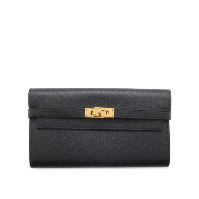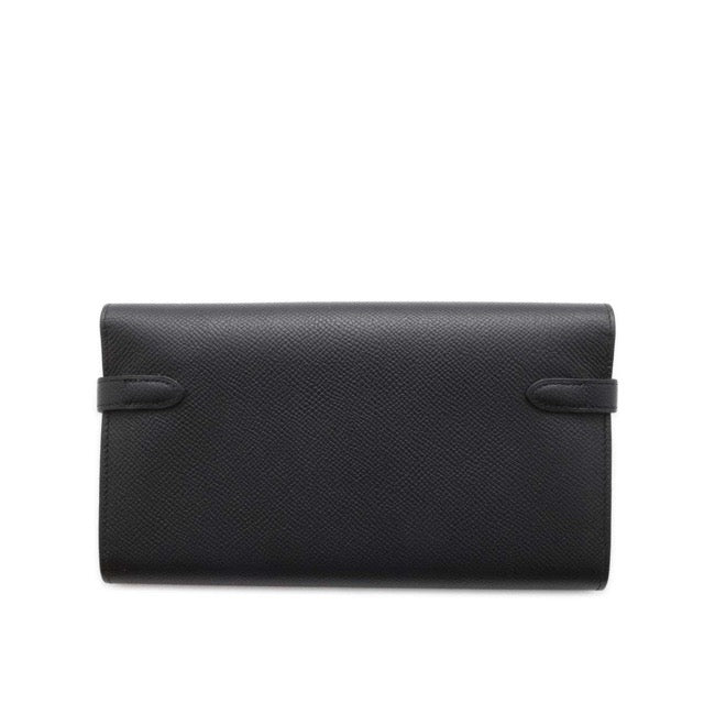 HERMES KELLY LONG WALLET BLACK EPSOM GOLD HARDWARE