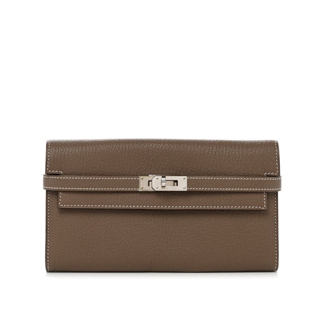 HERMES KELLY POCKET SLIM WALLET ETOUPE MADAME SILVER HARDWARE