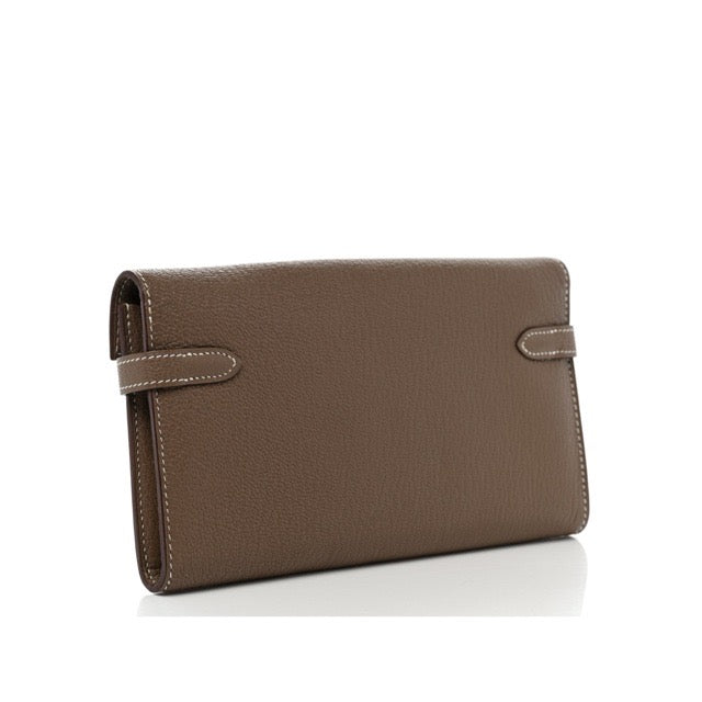 HERMES KELLY LONG WALLET ETOUPE CHEVRE MYSORE SILVER HARDWARE