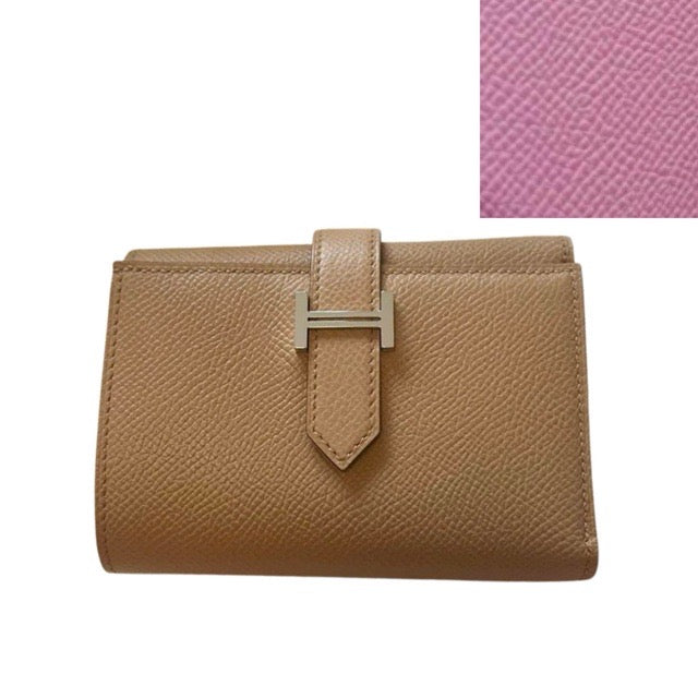 HERMES BEARN COMBINE TRI-FOLD WALLET VERSO CHAI MAUVE SYLVESTRE EPSOM SILVER HARDWARE