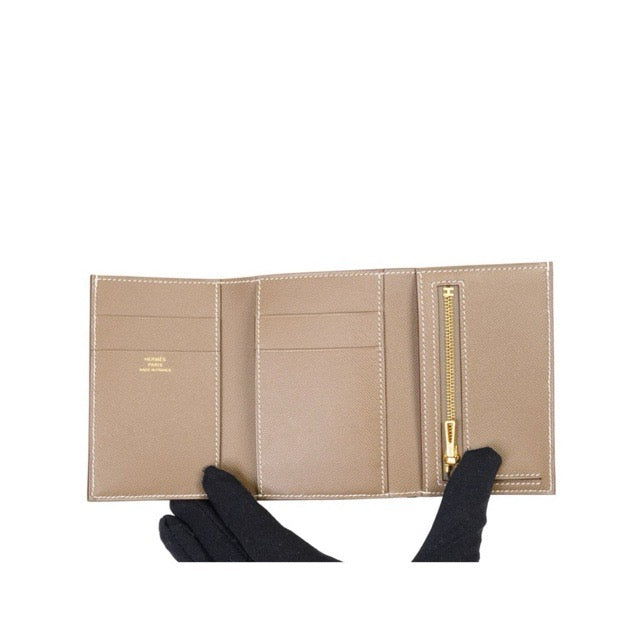 HERMES BEARN COMPACT WALLET ETOUPE EPSOM GOLD HARDWARE