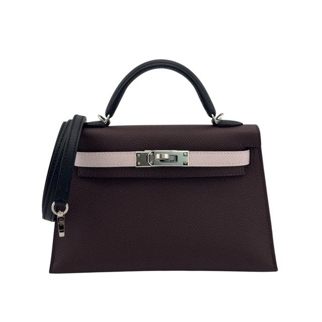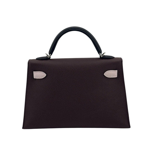 エルメス ミニケリー ケリーミニ2 ミニドゥ 外縫い トリコロール ルージュセリエ モーヴペール キャバン ノワール エプソン シルバー金具 HERMES KELLY MINI 2 SELLIER 20 TRI-COLOR ROUGE SELLIER MAUVE PALE CABAN EPSOM SILVER HARDWARE