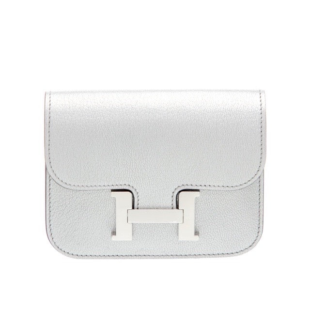 エルメス コンスタンス スリム ウォレット アルジャン メタリックシルバー シェーブル シャムキラ シルバー金具 折り財布 HERMES CONSTANCE SLIM WALLET ARGENT METALLIC SILVER CHEVRE CHAMKILA SILVER HARDWARE