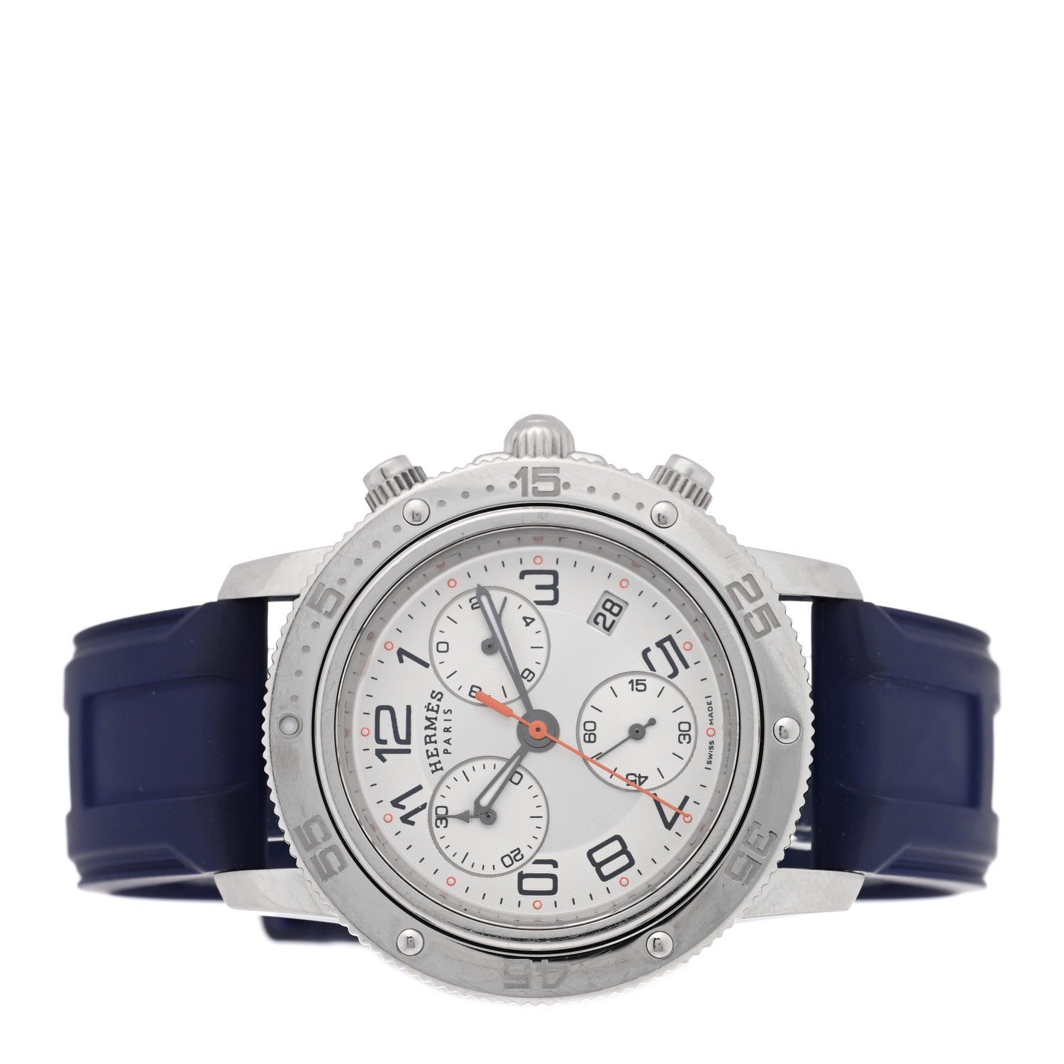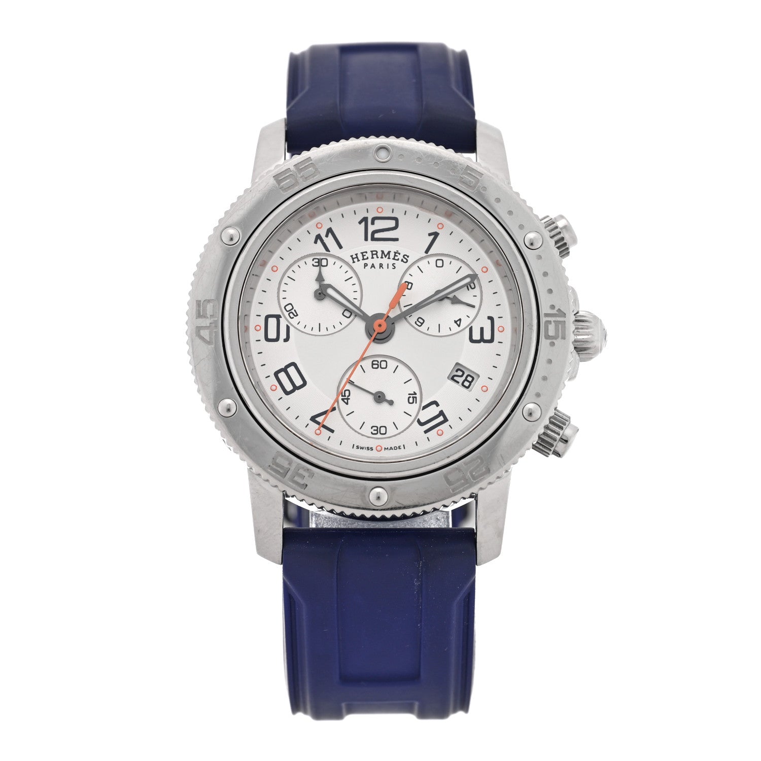 エルメス ラバー 36mm クリッパー クロノグラフ クォーツウォッチ 腕時計 ブルー