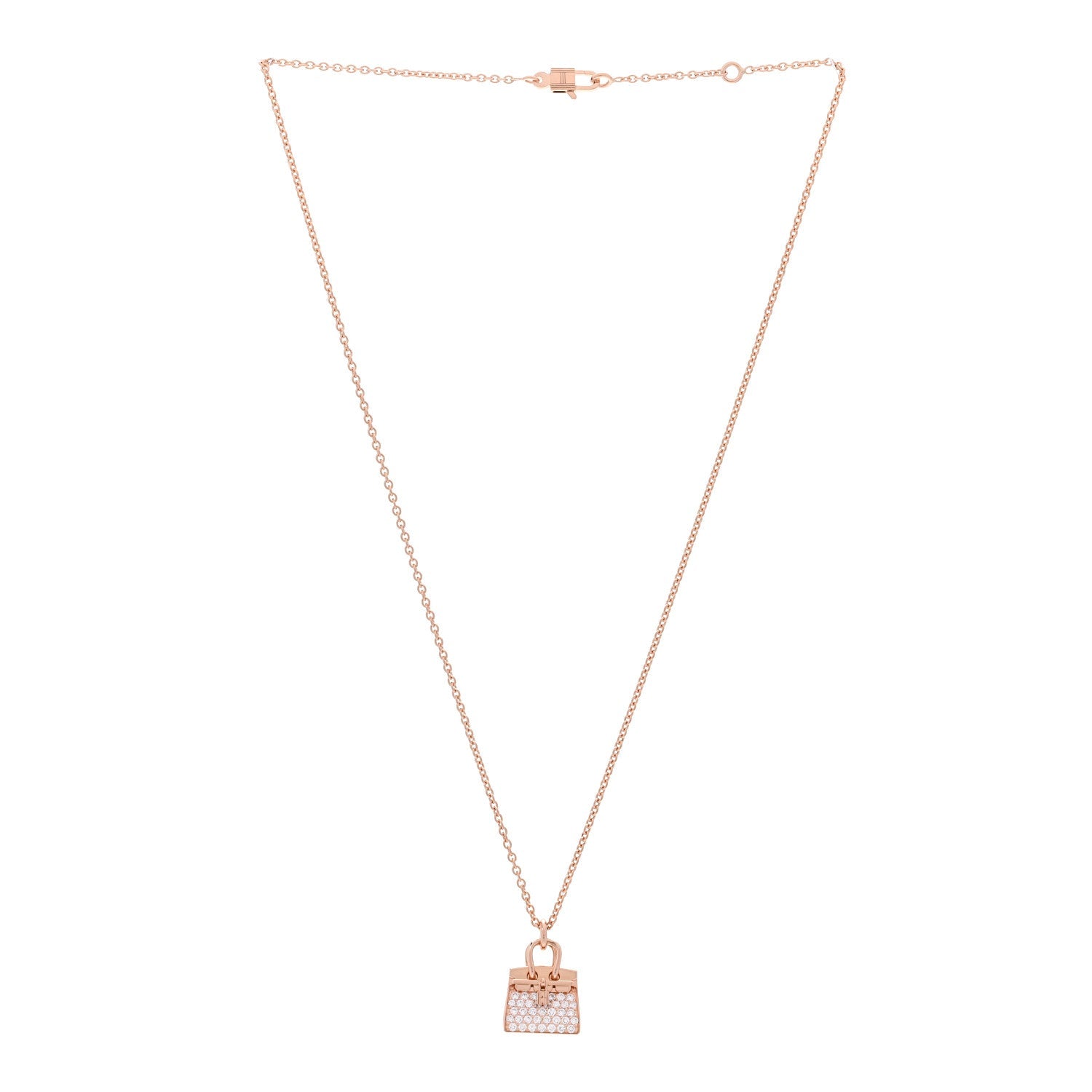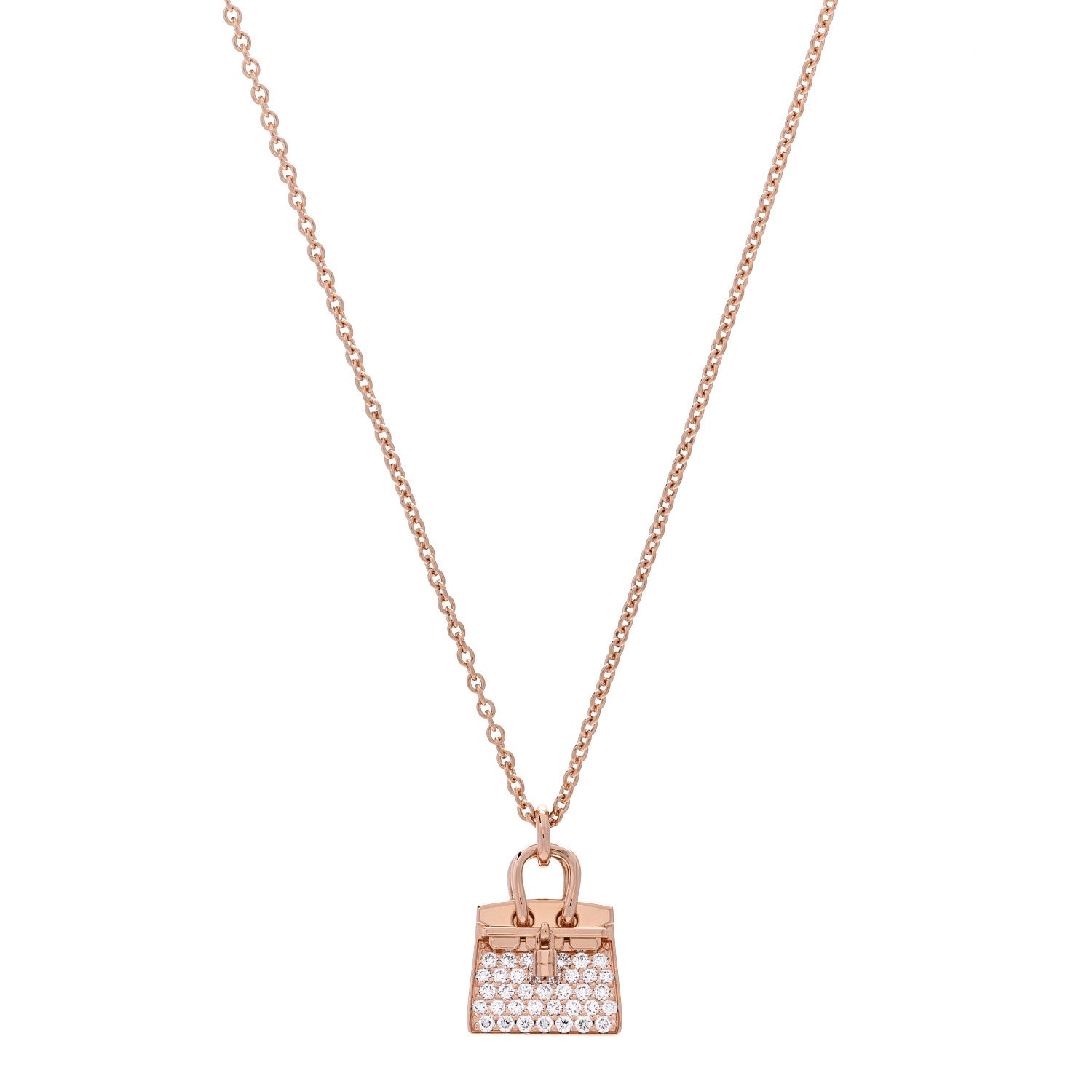 エルメス 18K ローズ ゴールド ダイヤモンド バーキン アミュレット ペンダント ネックレス