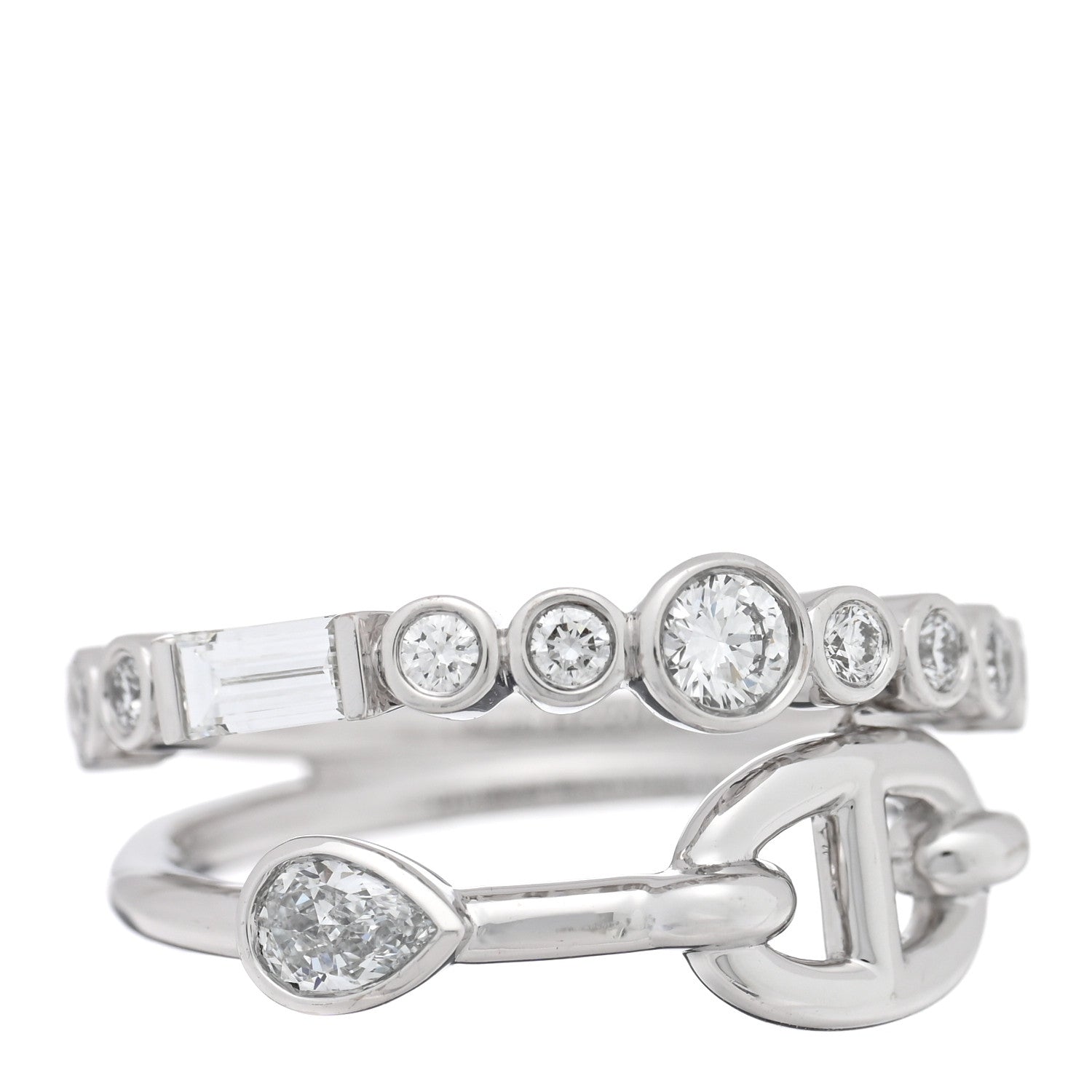 エルメス 18Kホワイトゴールド ダイヤモンド チェーンダンクル ファンシーカオスリング 50 5.25