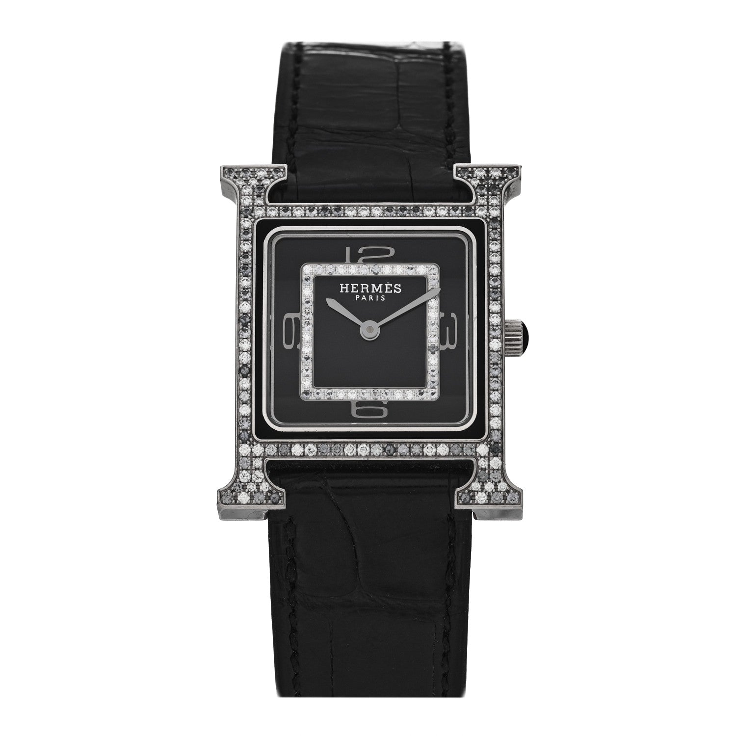 エルメス 18Kホワイトゴールド アリゲーター ダイヤモンド グレーサファイア 26mm Hウォッチ アワー クォーツウォッチ 腕時計 ノワール