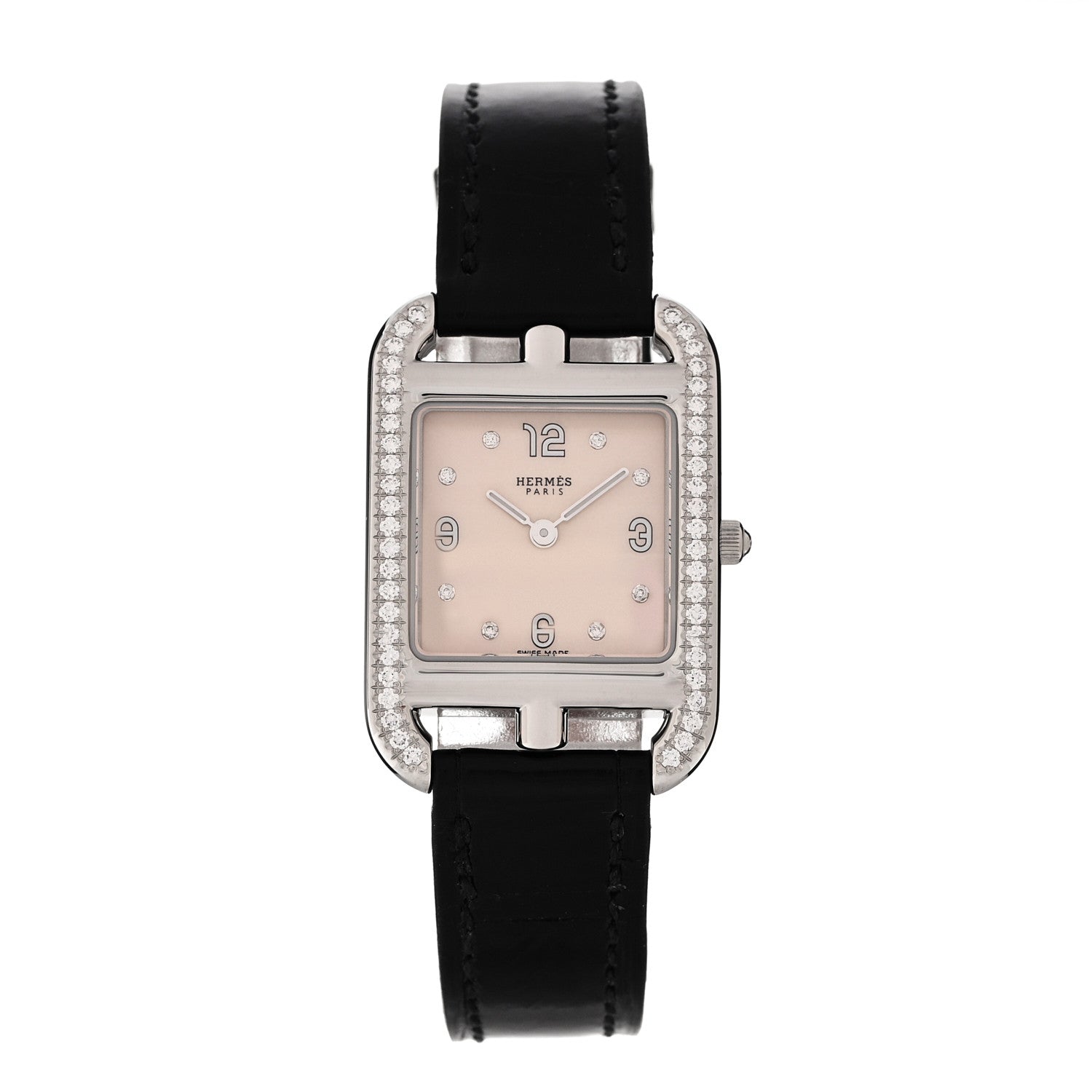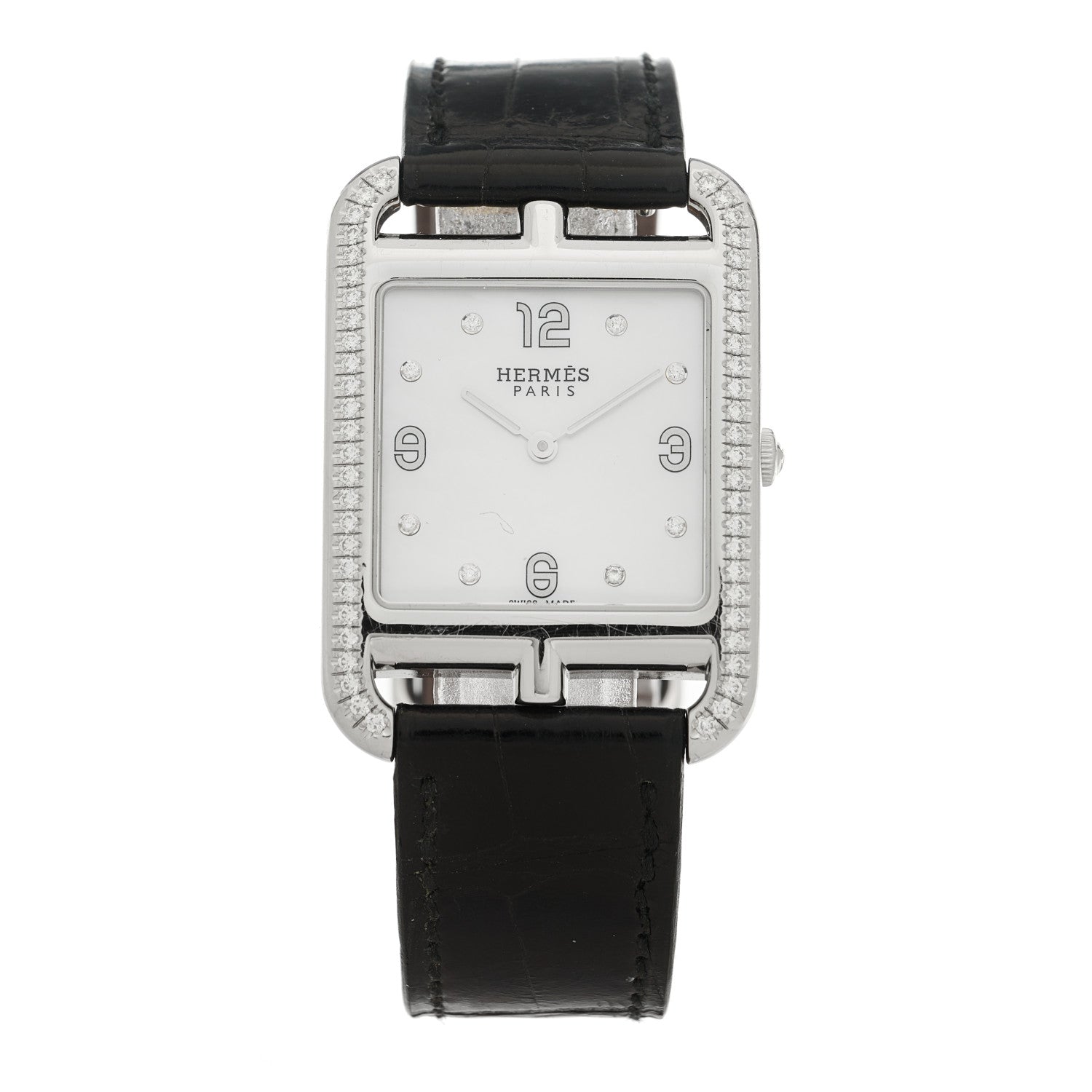 エルメス アリゲーター ダイヤモンドベゼル マザーオブパール 29mm ケープコッド クォーツウォッチ 腕時計 ノワール