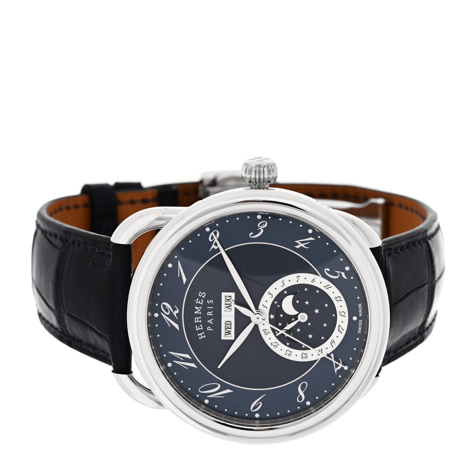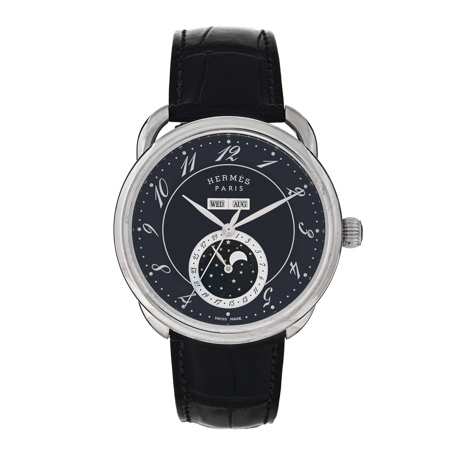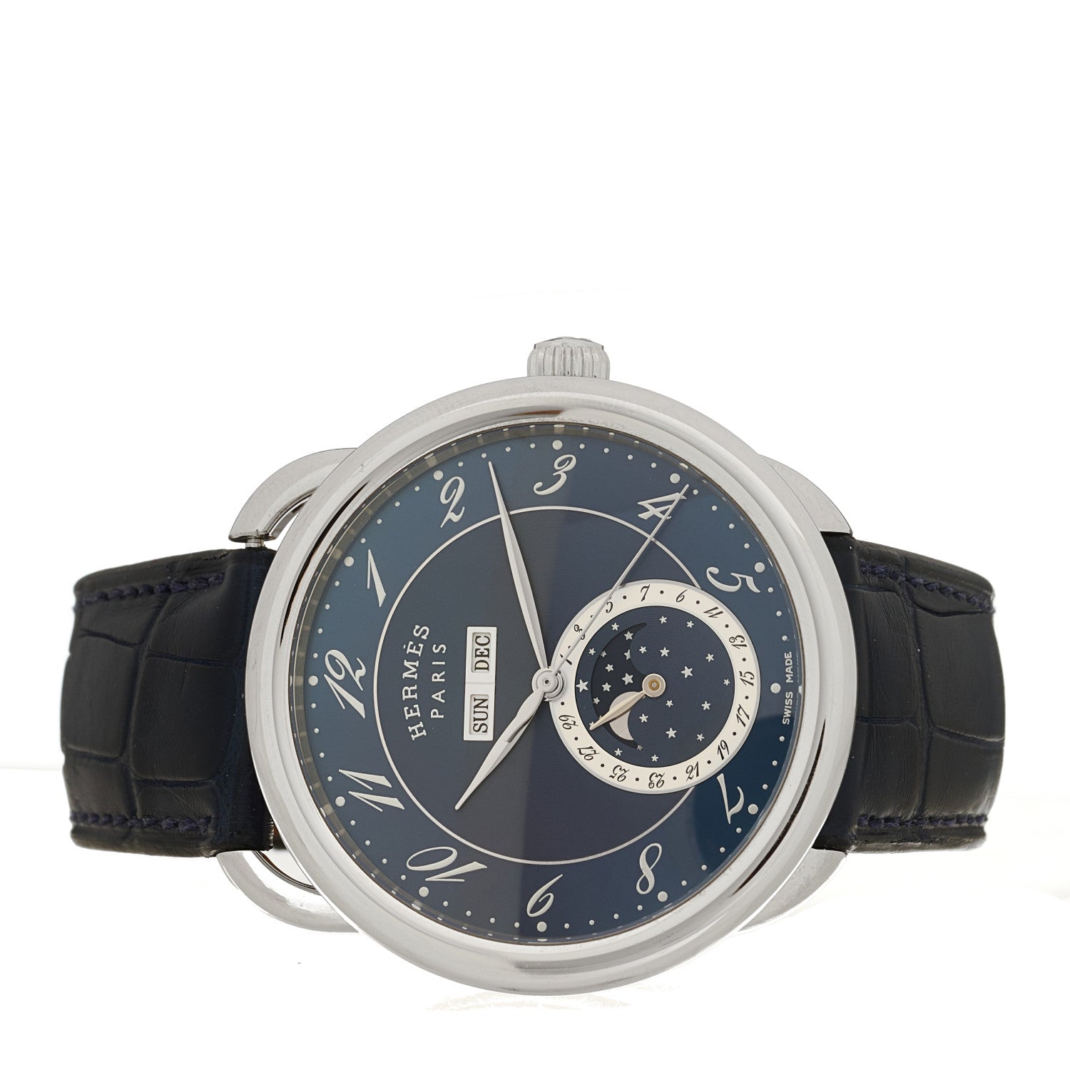 エルメス アリゲーター 43mm アルソー グランドリュンヌ 自動巻き時計 ブルーアビス