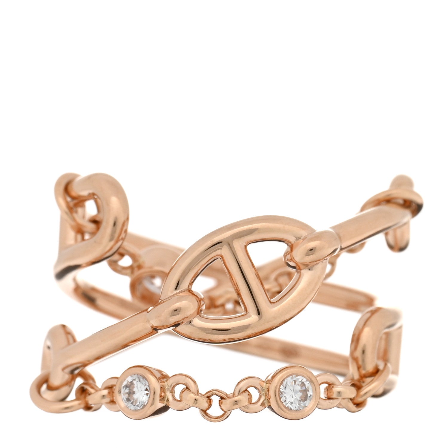 エルメス 18Kローズゴールド ダイヤモンド MM チェーンダンクル カオス リング 46 3.75