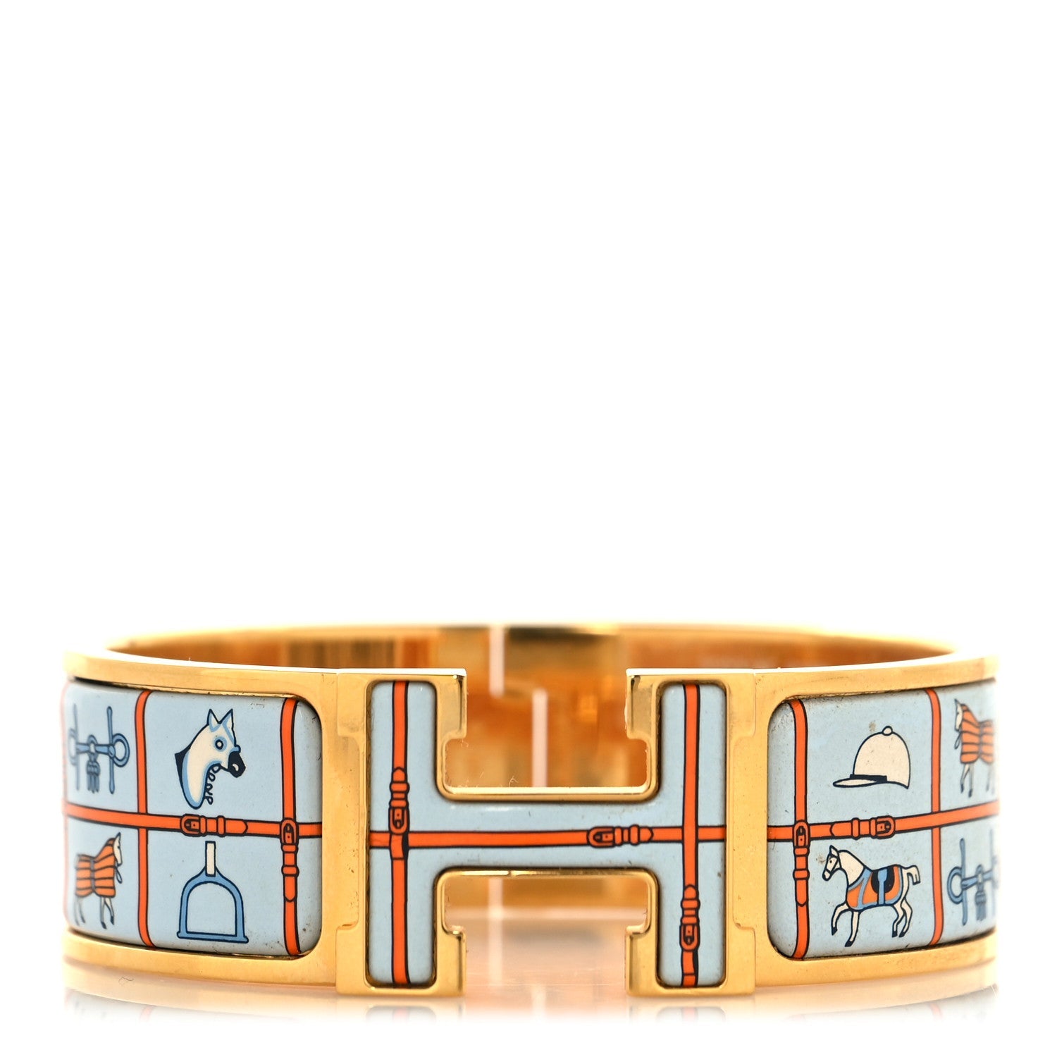 エルメス エナメル プリント ワイド クーベルチュール エ テヌ ドゥ ジュール クリック クラック H ブレスレット PM オレンジ ブルー