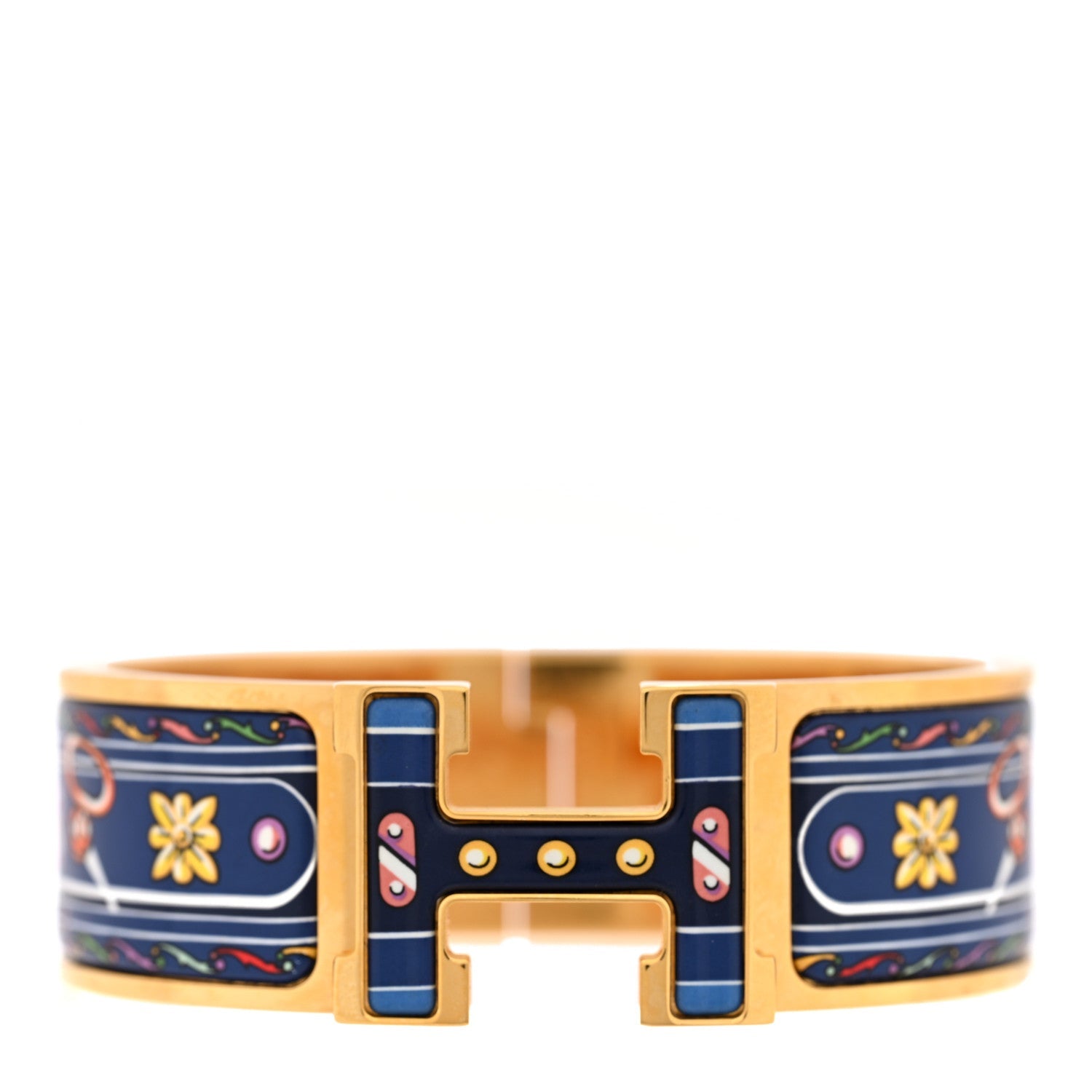 エルメス エナメル プリント ワイド Les Voitures Nouvelles Clic Clac H ブレスレット GM インディゴ マルチカラー